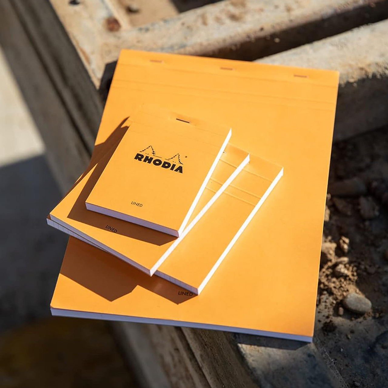Artists, designers, scientists, and architects have an intense devotion to Rhodia Classic Top-Stapled Pads! They're perfect for on-the-go use, with stiff back covers and top staple-bound, scored front covers that fold back conveniently out of the way.