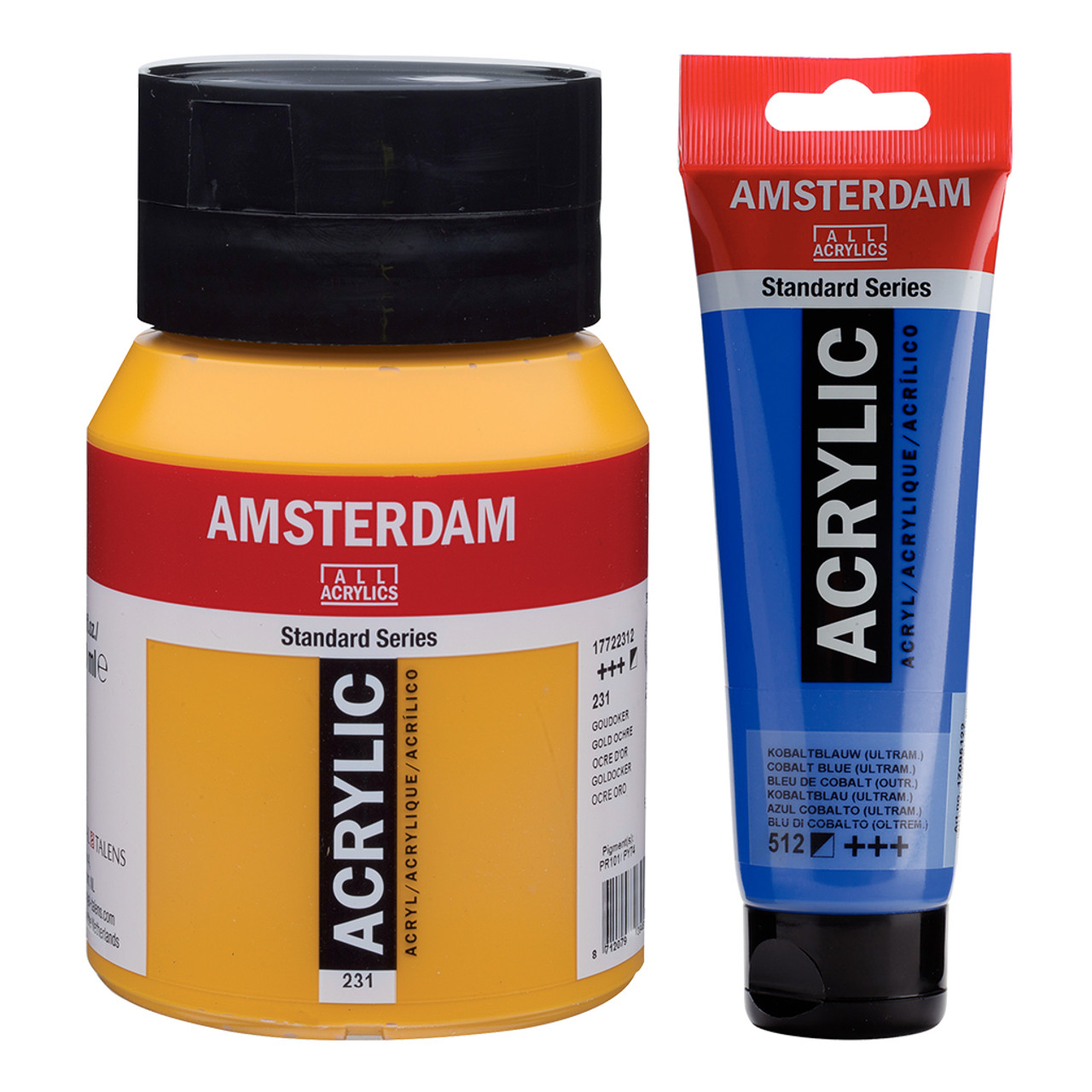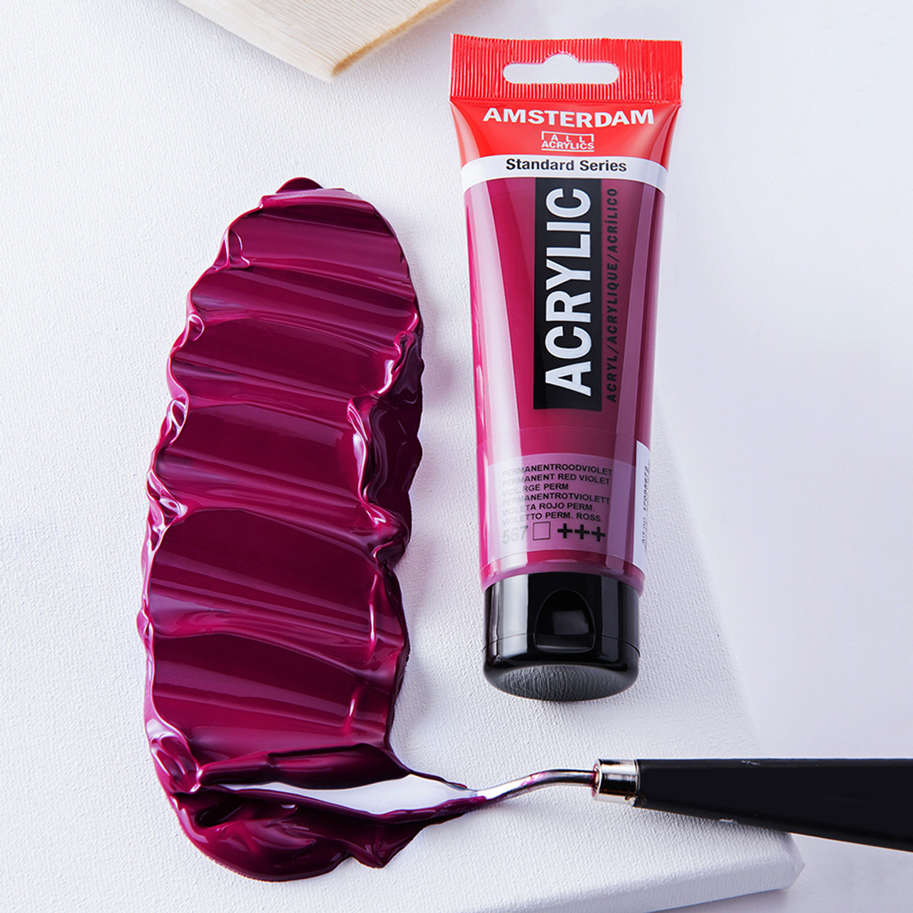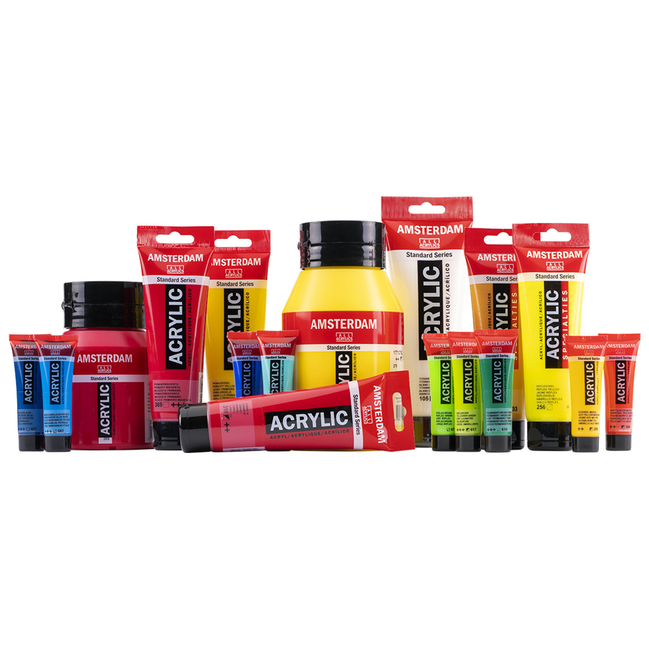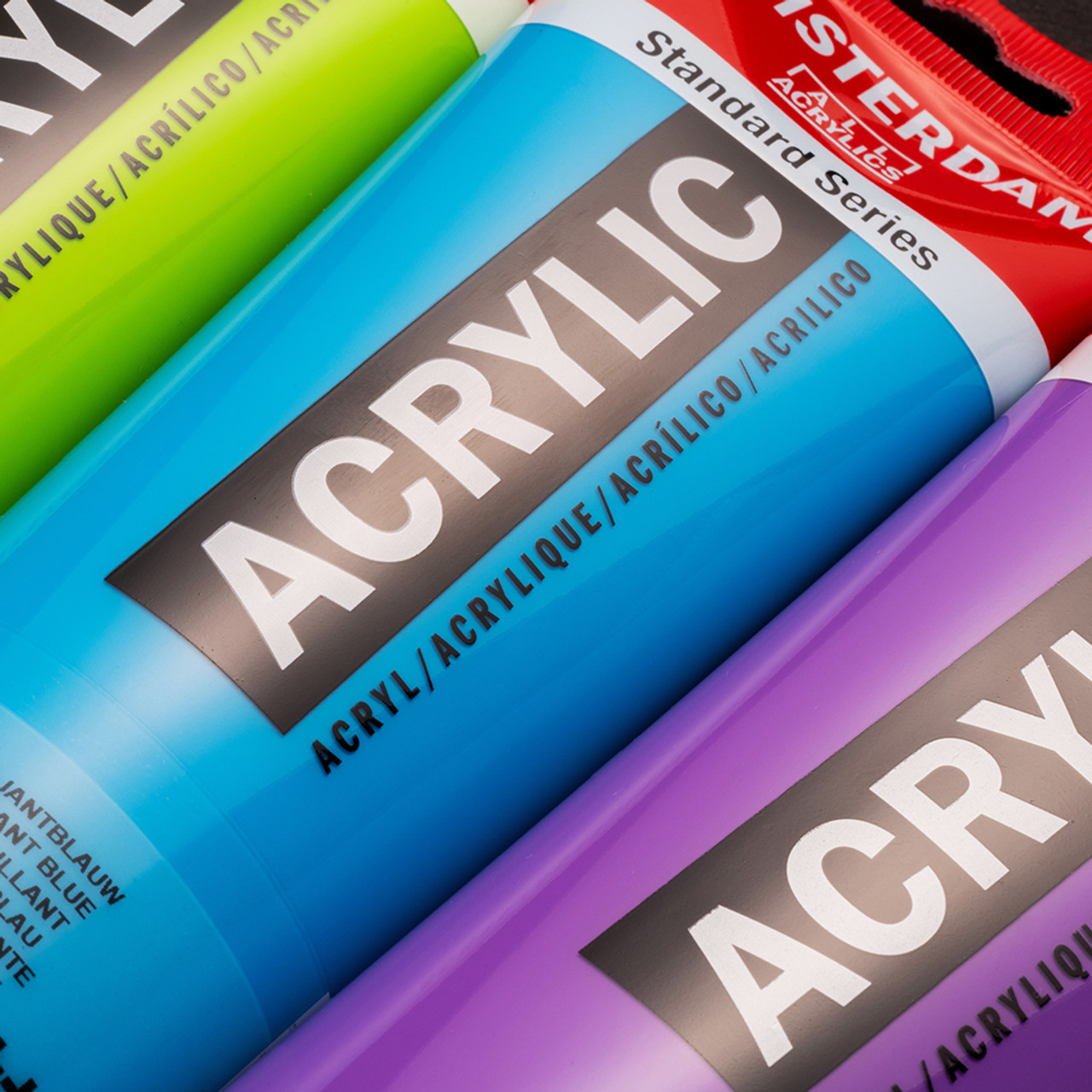 Amsterdam Standard Series Acrylics feature remarkably vibrant, traditional, and contemporary colors. They boast a high level of lightfastness, thanks to the use of high-grade, non-fading pigments in a 100% acrylic emulsion. This medium viscosity paint is easy to work with and offers a smooth color when applied on its own. Thin applications of paint will dry within half an hour.