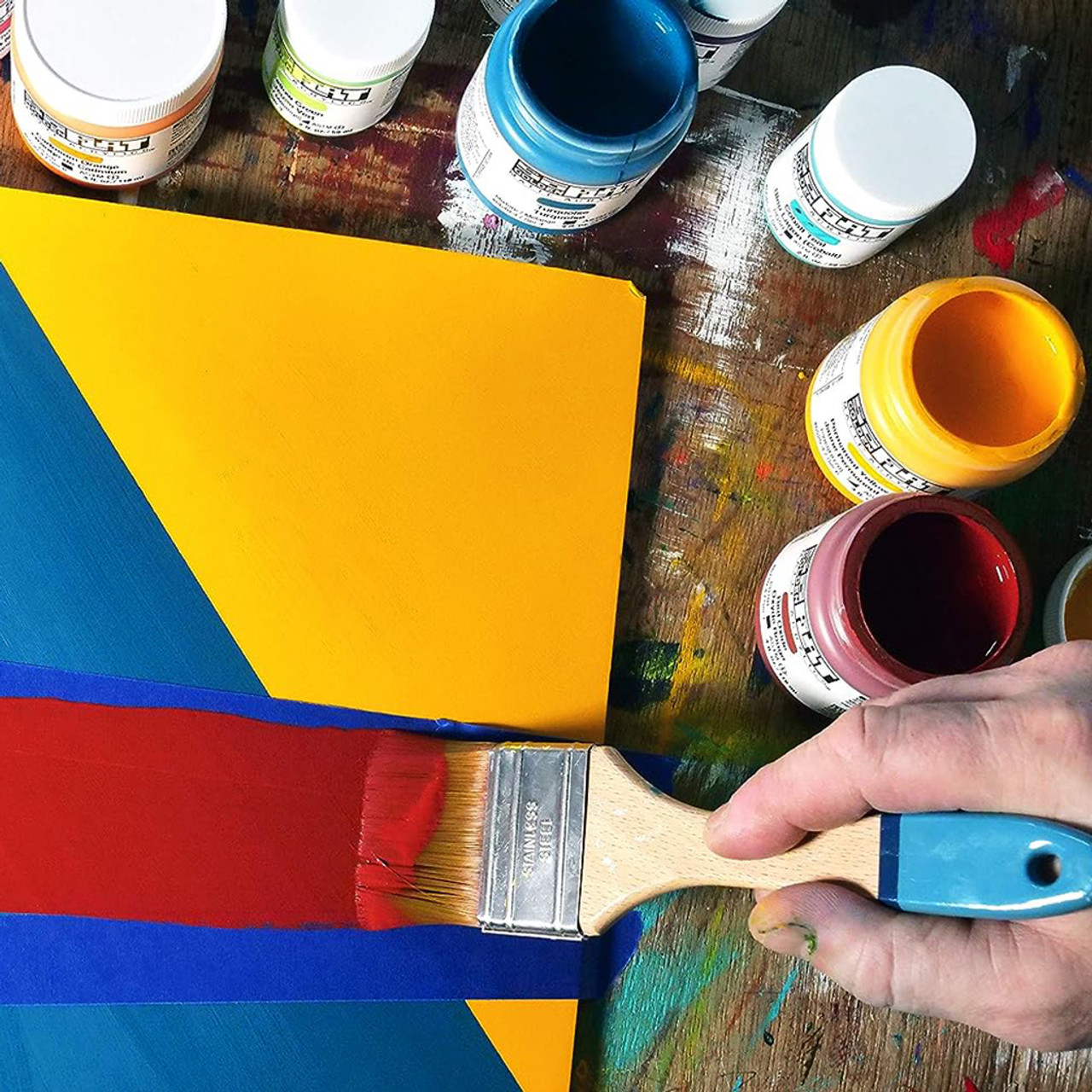 Golden SoFlat Matte Acrylics deliver an unmatched combination of intense matte color with enhanced leveling and opacity, enabling artists to achieve uniform fields of rich color with archival performance in indoor applications.