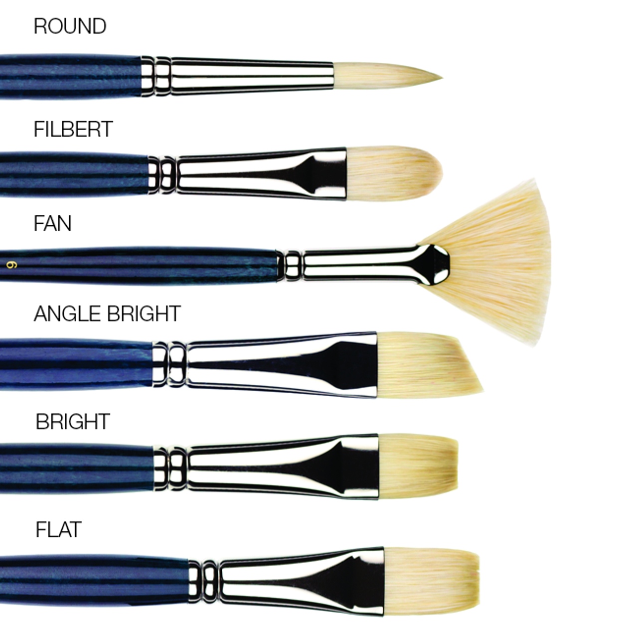Princeton Series 5200 Ashley Natural Bristle Long Handle Brushes are made with traditional, natural hair, pure hog bristle. They are ideal for oil painting, but can also be used with acrylics.