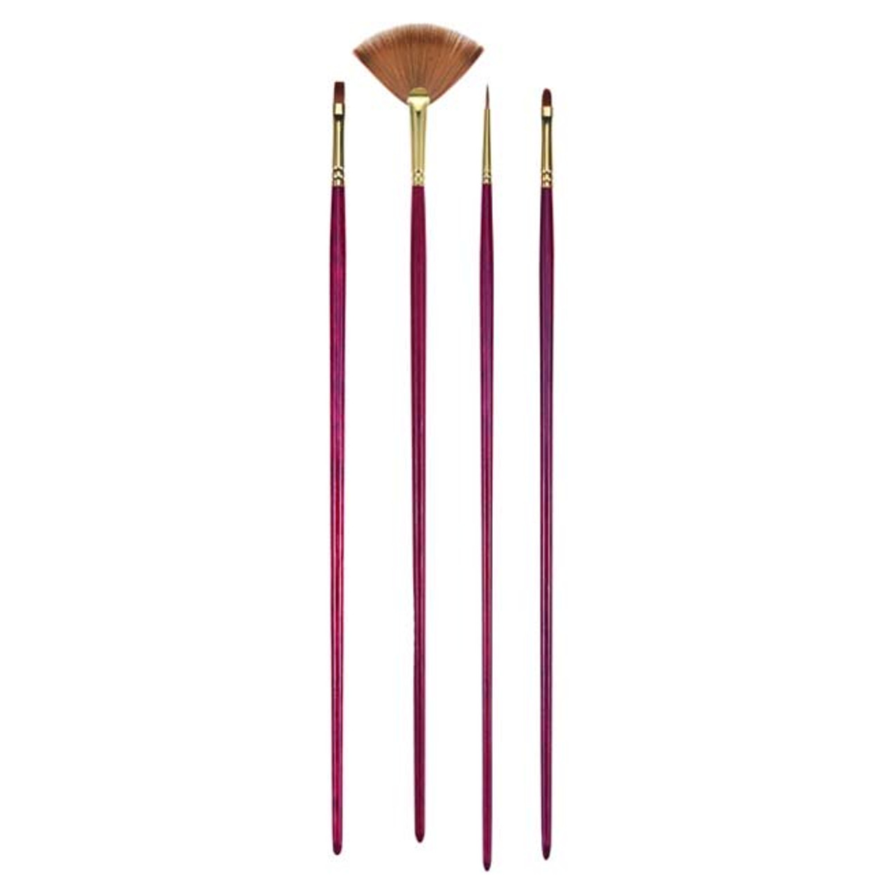 Long handled brushes with the finest hair for acrylic and oil techniques. Synthetic sable blend is designed for better brushability and color-holding capacity. Gold ferrules and marbled red hardwood handles make this an attractive looking brush, as well.