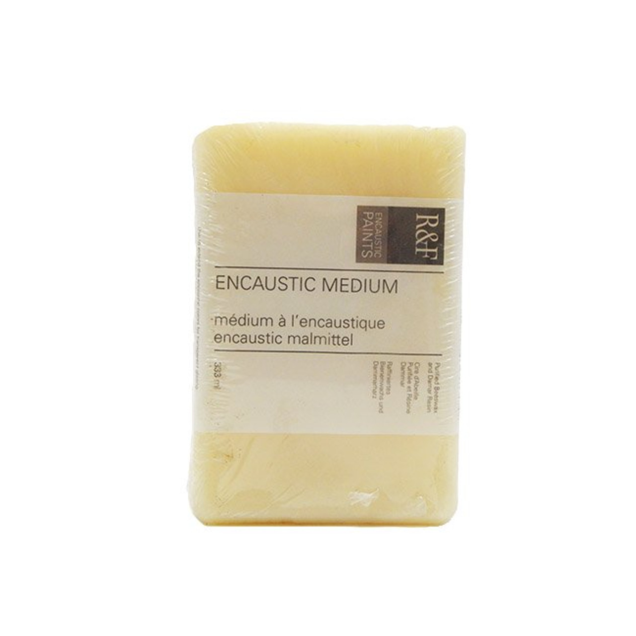 This medium is an encaustic paint without pigment and is an essential component to encaustic painting. R&F's medium is made of 100% USP beeswax and damar resin. It is typically used to create transparency and extend encaustic colors. 333 ml poured cake.