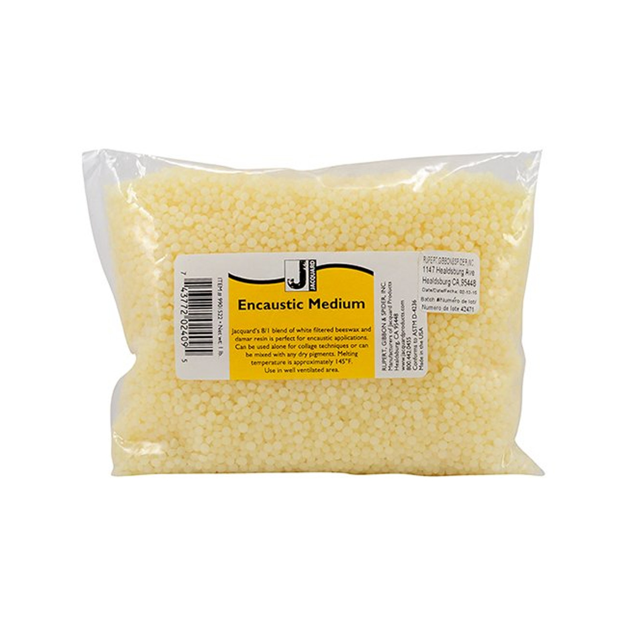 Jacquard Encaustic Medium is a 8:1 blend of white filtered beeswax and damar resin, perfect for encaustic applications. It can be used alone or mixed with any encaustic paints or pigments. Encaustic medium comes in easy-to-measure pellets. 1 lb package.