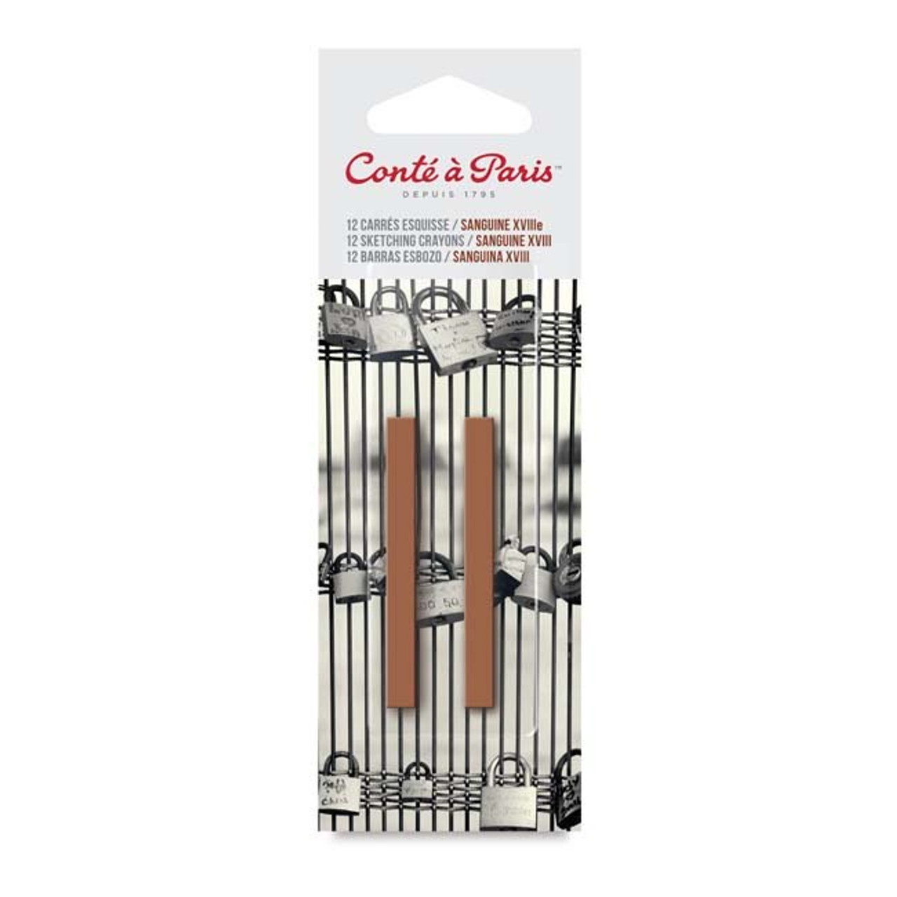 Conte crayons are drawing sticks synonymous with the colors of clay (the first sticks used clay and graphite for color). Now, natural pigments are used in the common colors of white, black, grey, sanguine (terra cotta), and bistre (brown). This is a handy 2 pack of the sanguine color.