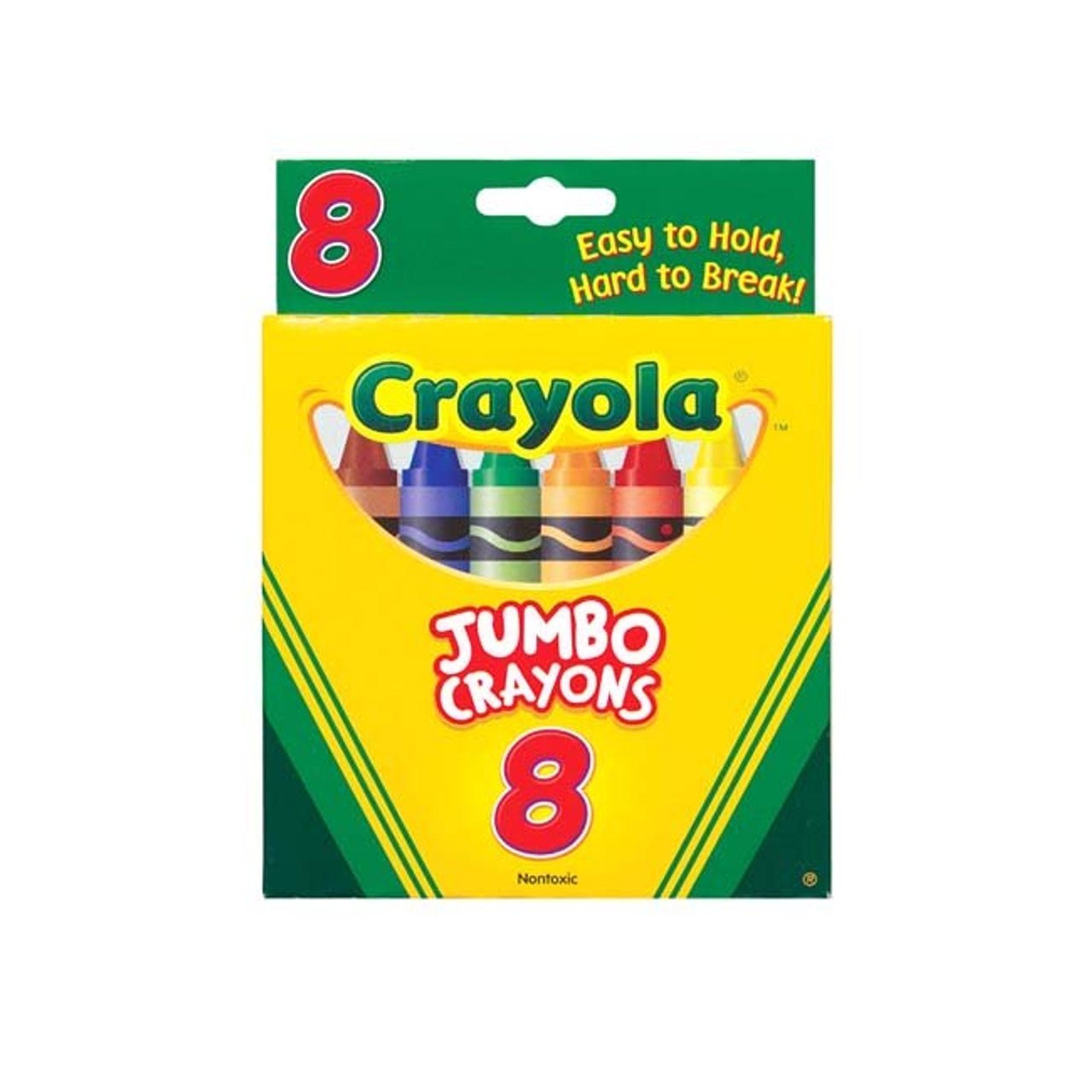 Jumbo Crayola Crayons are 5" long and more than 1/2" thick. Oversized for easy handling and big, bold, marks. Same Crayola colors. This box has the classic 8. AP certified non-toxic. See Included Colors Below