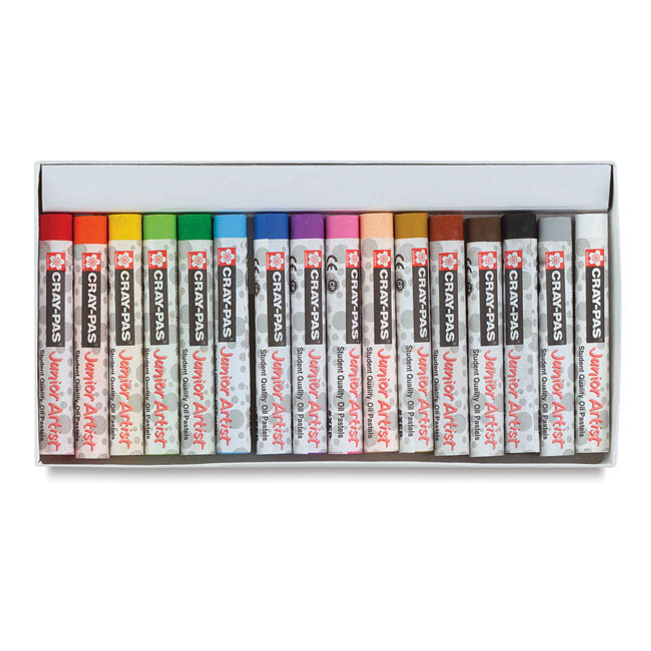 Intensely colored and long-lasting, Cray-Pas Junior Artist pastels are used in classrooms worldwide for introducing young artists to the creative process. Specially formulated for easy color layering and blending, these oil pastels achieve oil painting effects without the mess of actual oil paint. Many teachers prefer them over ordinary wax crayons because they provide a wide range of effects and techniques for skill development. Set of 16.