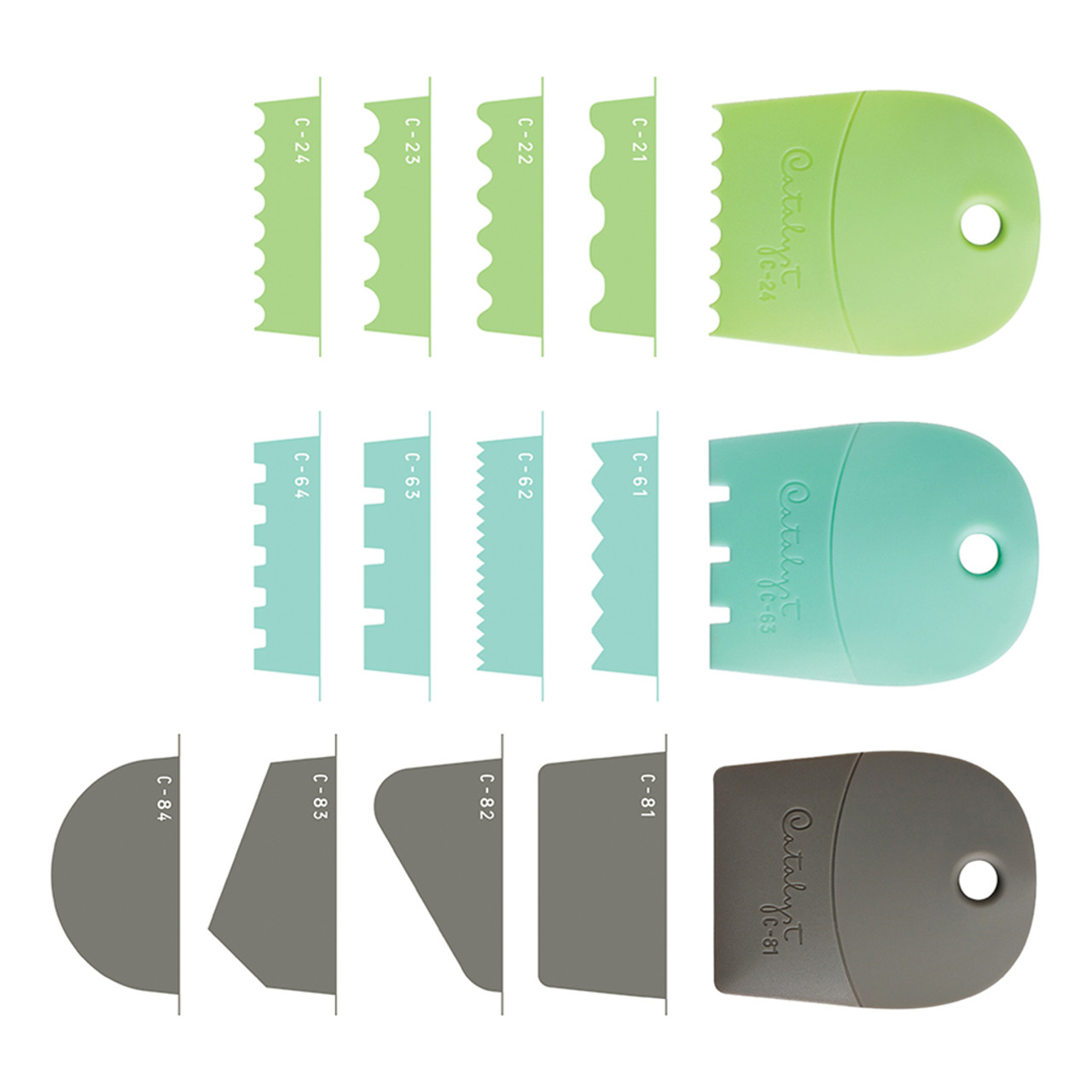 These great features combined with their new shapes and convenient sizes allow for extensive creativity with cake decorating, food crafting, ceramics, plaster, and heavy acrylic mediums.