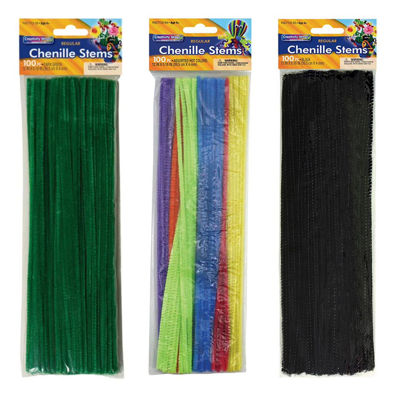 These regular chenille stems are available in packs of 100 in single or assorted colors.